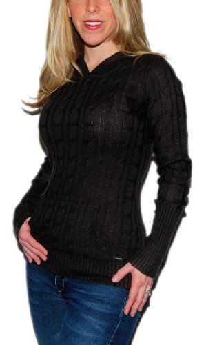 @@@ Product Details : Hooded Guess Womens Wool Thin Cable Knit Sweater Hoodie Hooded Sweatshirt Chocolate Brown XL