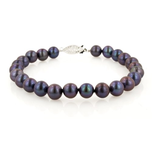 Buy Now! Sterling Silver Dyed Peacock Black Freshwater Cultured Pearl A Grade 6.5-7mm Bracelet, 7.25"